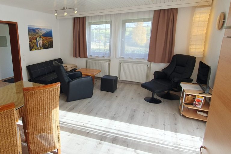 Herzstück unserer modern eingerichteten Ferienwohnung ist der lichtdurchflutete Wohn- und Essbereich.
